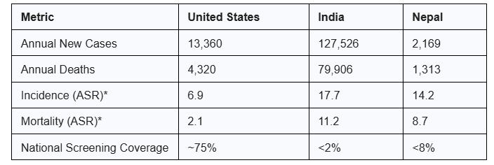 Table 1. Comparative Regional Burden and Screening Metrics (NIH/IARC, 2022-23)12
