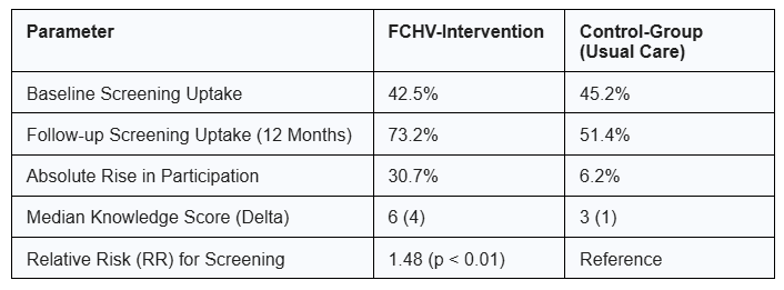 Data from the COBIN-C trial (Table 2) indicates that participants in the intervention group were 48% more likely to adhere to screening protocols than those in the control group. The study further confirmed the scalability and cultural relevance of utilizing community volunteers for outreach, as median health literacy scores regarding the causes and prevention of cervical cancer rose from 2 to 6, a substantial improvement.⁵