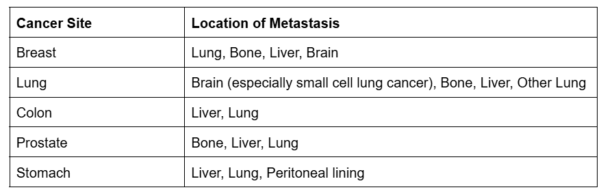 What Are the Common Locations of Metastasis?