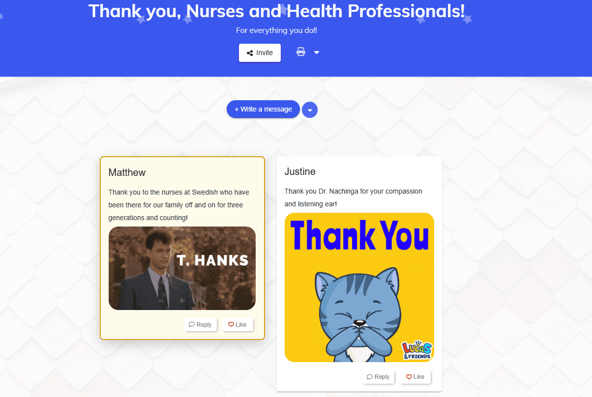 That’s why we wanted to pay tribute as we head into May, National Nurses Month. It’s the perfect time to reflect on those nurses or health professionals who have walked with you in your health journey. Click here to share words of gratitude—we’ll collect responses into an interactive, real-time tribute. Plus, take a moment to read about the health professionals who have impacted others’ lives and loved ones in a positive way.